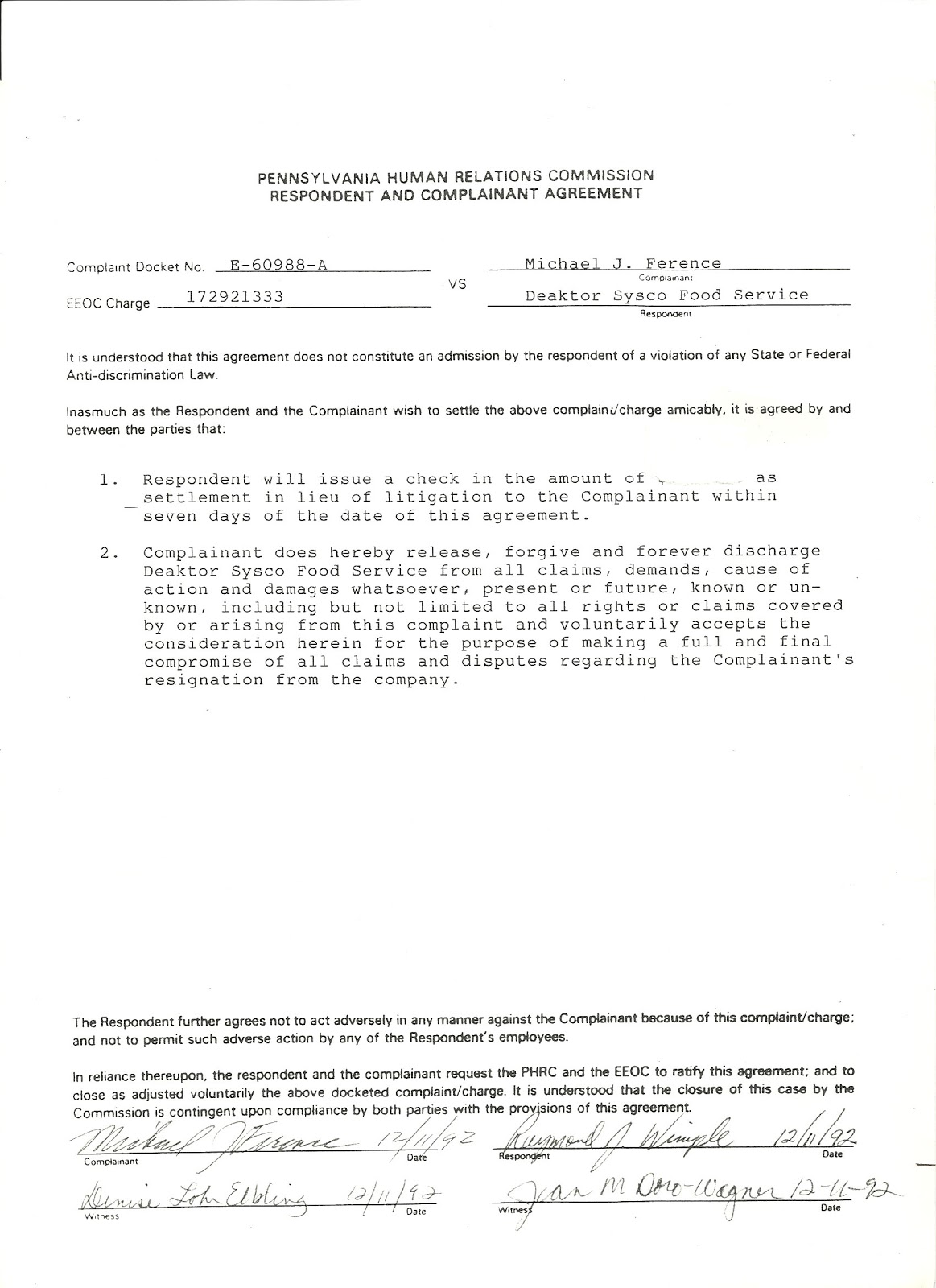 claim with the PA Human Relations Commission. In not being able to